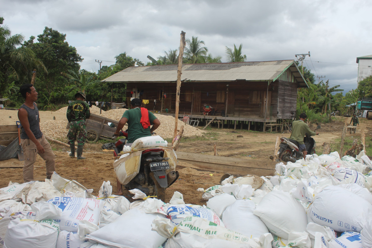 Medan yang sulit dan akses jalan yang terbatas membuat penggunaan kendaraan besar tidak memungkinkan. Oleh karena itu, perahu kecil menjadi sarana utama mengangkut material melalui jalur sungai, sementara motor roda dua digunakan untuk mendistribusikan material dari titik bongkar ke lokasi yang lebih dekat.