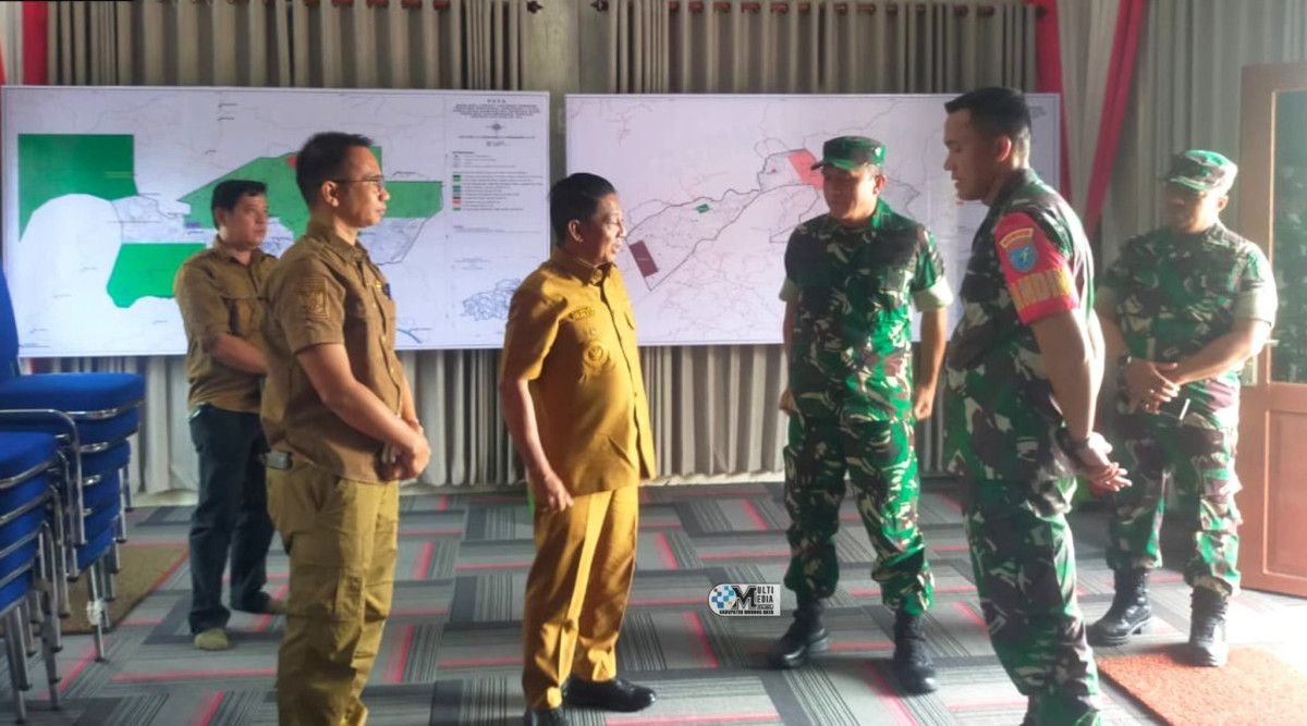Tampak Kasi Ops Korem 102/Pjg menerima paparan dari Dandim 1013/Mtw dan Bupati Murung Raya