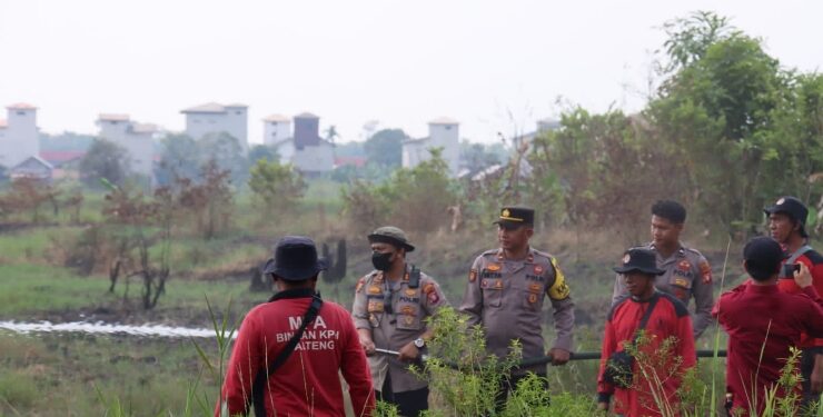 BUNTOK – Mengetahui adanya hot spot atau titik panas api, Kapolres Barito Selatan (Barsel), AKBP Yusfandi Usman memimpin langsung Satgas Siaga Karhutla dengan sigap berupaya segera memadamkan kebakaran lahan yang terjadi di Kelurahan Rantau Bahuang, Kecamatan Jenamas. Dalam kegiatan upaya pemadaman kali ini, melibatkan petugas gabungan Manggala Agni, TNI, KPHP serta Masyarakat Peduli Api (MPA) dengan menggunakan perlengkapan pemadam api langsung melakukan penyemprotan secara sinergi di titik yang masih mengepul agar cepat dipadamkan dan tidak menjalar.