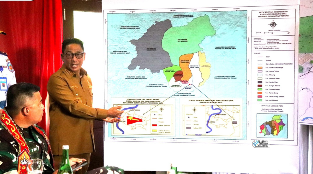 Hal tersebut dikatakan Bupati Mura, Heriyus saat menyampaikan paparan yang dihadiri Wakil Kepala Staf Angkatan Darat (Wakasad), Letnan Jenderal TNI Tandyo Budi Revita, Gubernur Kalteng, Agustiar Sabran, Pangdam XII/Tpr, Mayjen TNI Jamallulael dan jajaran lainnya. Bertempat di Bandar Udara (Bandara) Dirung, Kecamatan Tanah Siang Selatan, Kabupaten Murung Raya, Selasa (3/6/2025).