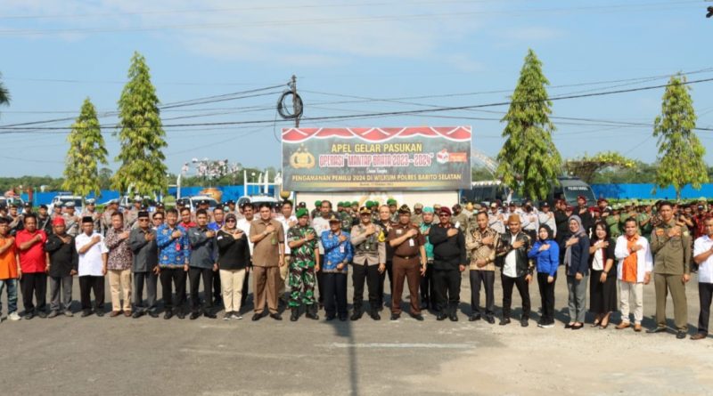 BUNTOK – Dalam rangka persiapan pengamanan dalam mengawal Pemilu serentak tahun 2024 mendatang, Polres Barito Selatan (Barsel), melaksanakan Apel Gelar Pasukan Operasi Mantap Brata Telabang Tahun 2023-2024.
