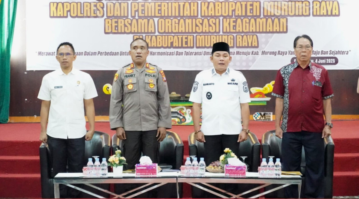 PURUK CAHU – Dalam rangka memperkuat komunikasi dan membangun sinergi lintas agama, Polres Murung Raya menggelar kegiatan Silaturahmi Toleransi bersama Pemerintah Kabupaten Murung Raya (Mura) dan organisasi keagamaan, Rabu (4/6), bertempat di Gedung Dewan Adat Dayak (DAD) Kabupaten Murung Raya.